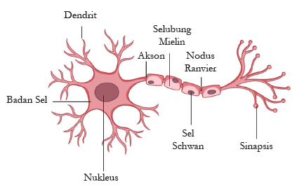 Sistem saraf manusia terdiri dari jutaan sel saraf yang disebut neuron. Setiap neuron memiliki struktur yang khas yang meliputi dendrit, badan sel, akson, selubung mielin, nodus Ranvier, sel Schwann, dan sinapsis.